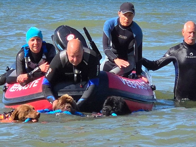 Następny dzień, ze względu na trudne warunki na morzu, spędziliśmy na treningach na lądzie. Pojechaliśmy też na basen, gdzie ćwiczyliśmy skoki ratownicze i techniki holowania. Wieczorne symulacje były wymagające i bardzo realistyczne — weryfikowały nie tylko nasze umiejętności techniczne, ale też współpracę, komunikację i zdolność szybkiego reagowania. Atmosfera w grupie była jednak fantastyczna. Każdy dzień przynosił nowe doświadczenia, większą pewność siebie i lepsze zrozumienie pracy z psem w trudnych warunkach. Wspólne omawianie akcji po zakończonych zajęciach było równie cenne jak same treningi.