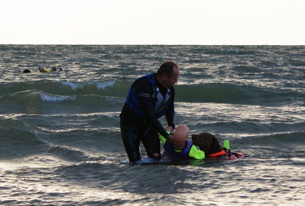 Pracowaliśmy zarówno z lądu, jak i z łodzi — skoki do wody, wspólne pływanie i liczne scenariusze pozorowanych akcji ratowniczych wypełniały nam czas po brzegi.